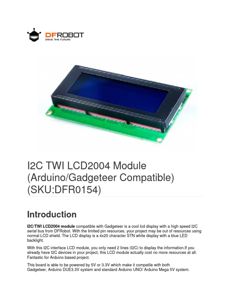 Module I2C Datasheet 2 PDF Arduino Liquid Crystal Display
